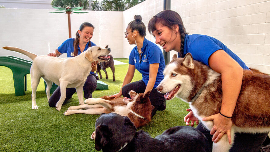 An award-winning luxury dog hotel offers a resort-style experience, combining comfort with recreational fun, and calming holiday anxiety for pets and their owners.