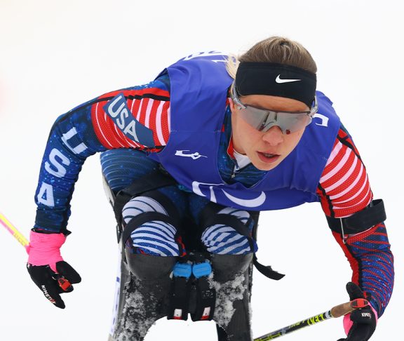 There are two. When I transitioned to cross-country skiing in 2014 and I won my first individual paralympic medal. Standing on the podium with a silver medal, I realized that I belong on this stage. And the second, in 2018, when I broke my elbow right before going to the games. I was expected to win all of my events. Racing with that broken elbow and still winning my first gold medal showed that I am not one to give up.
